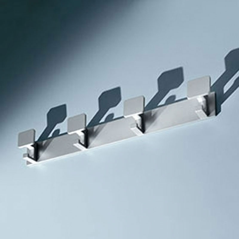 4 patères à tête carrée + 1 crochet, fixées sur lice.